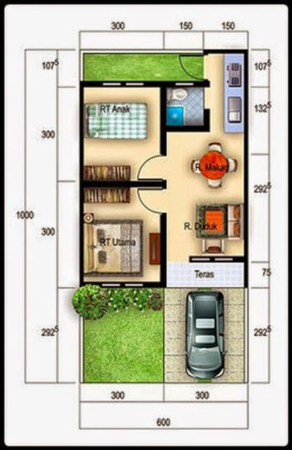 30 Contoh Denah Dan Desain Rumah 6x10 60m3 Desain Id